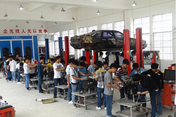 學(xué)生在上汽車維修課