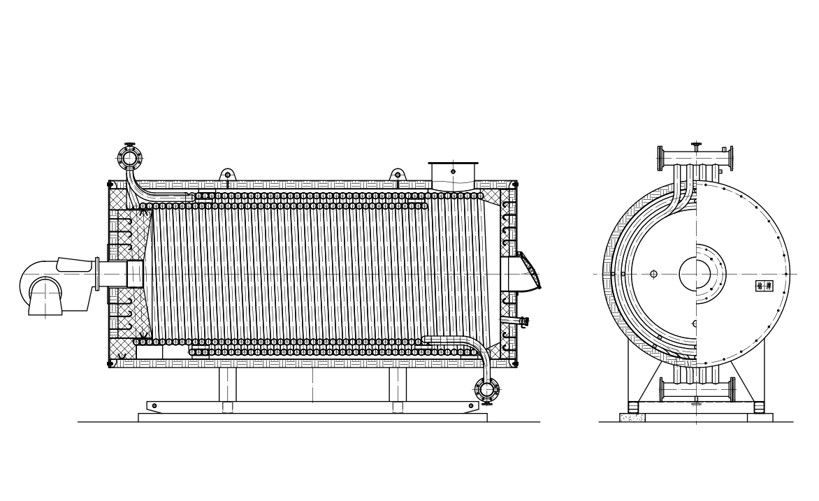 6、盤管設(shè)計(jì):爐體內(nèi)、外螺旋盤管采用多頭、小管徑鋼管制成,盤管的熱膨脹性能好、應(yīng)力低、安全可靠。